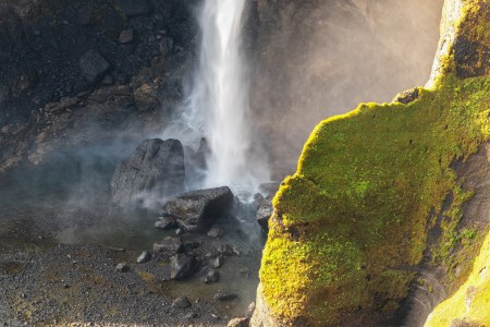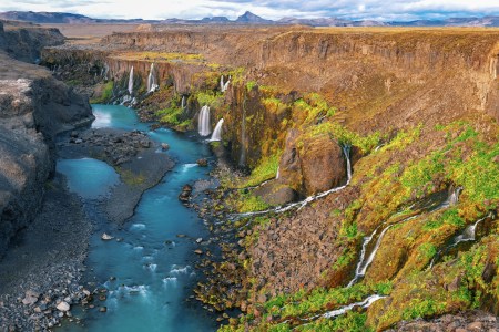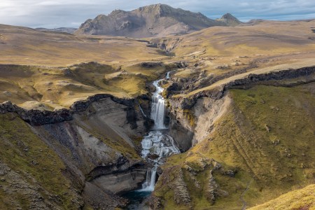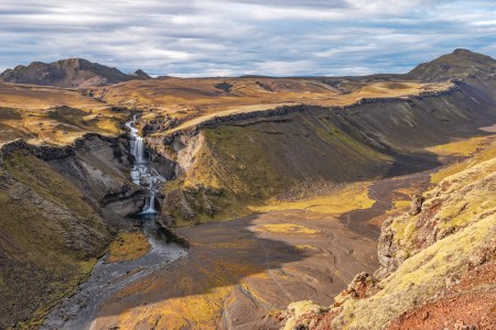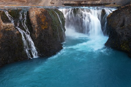 Because we were traveling with a knowledgeable local photographer, Brynjar Agústsson, and a very able driver in a powerful red bus that could leap tall rivers in a single accelerated burst, we weren’t locked into seeing only the most popular, easily accessible waterfalls. We could head into the Highlands once again with access to some of the most amazing sights I’d ever seen, or had the privilege to photograph.