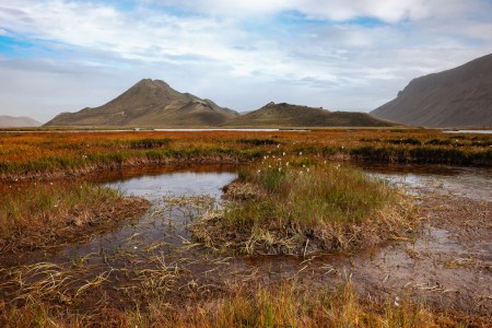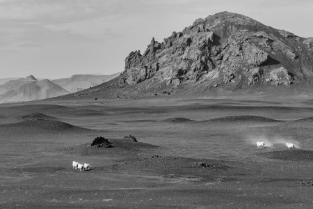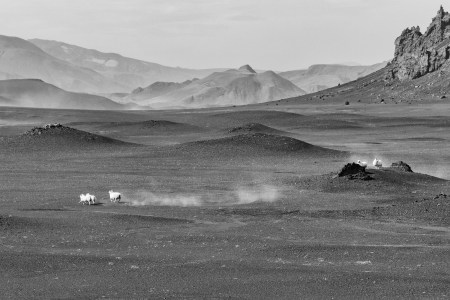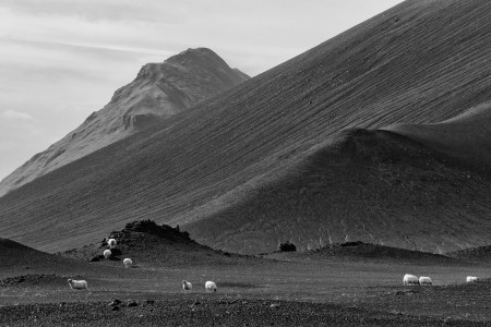 The next morning we set off toward Landmannalaugar, the heart the Highlands, and on the way there, the wind picked up and began to howl. The sandy surface produced so much dust it didn’t take long for one of my lenses to cease working. But while en route, we saw a heard of sheep on what looked like Mars, and it was magic.