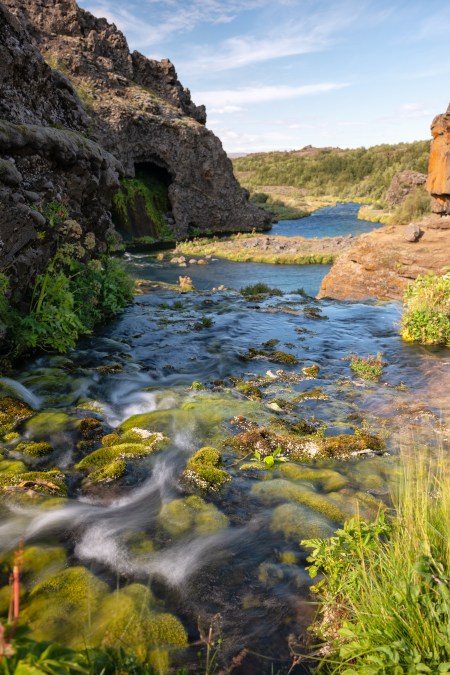 You start, of course, by traveling from Reykjavik through land that almost instantly has breathtaking water features. Bruarfoss was not on our original agenda, but a member of our group made the request to go on the six-mile roundtrip hike to see these falls, and I’m so glad we did. Less than 90 minutes from the capital, we had our tripods set up, jaws nearly agape at the color of the water.