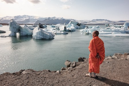 A Thai Buddhist monk was there – it wasn’t an apparition, he really was there — and while the ND filter I had on flattened the blue of the water and ice, I still treasure this picture, the sheer weirdness of the juxtaposition of a monk in robes at Jökulsárlón.