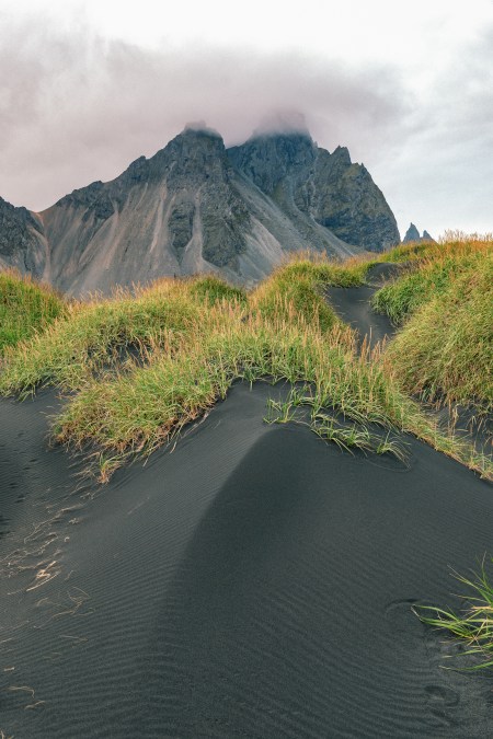 By early afternoon, we headed to Stoknes, one of the most spectacular beaches in Iceland, with dramatic black sand and a peak at the end. But the clouds rolled in, and the only image I care to share is one from the dunes.
