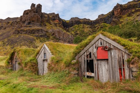 It was spooky, being amidst these abandoned farm buildings with their sod roofs. You could certainly see why whomever first settled here wanted to do so, given the twin waterfalls coming down from behind the structures and the view looking out.