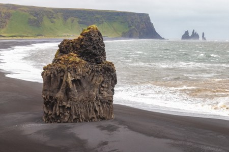We had one more planned stop. Just beyond Vik, we wanted to capture the famed Three Sisters, those rock formations in the water one often sees in black and white. But the viewpoint we went to also would allow us to see puffins, the only wildlife other than sheep we would have seen on our eight-day journey. Alas, we were met with 90-mph winds — no, really — and had to do the drunken hurricane walk to get to a position where we could get any images at all. Thank Heaven for Optical Image Stabilization and high ISOs, for there is no way I otherwise could have taken the image below with a 90-280 zoom lens.