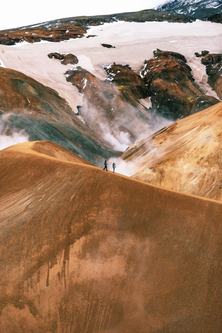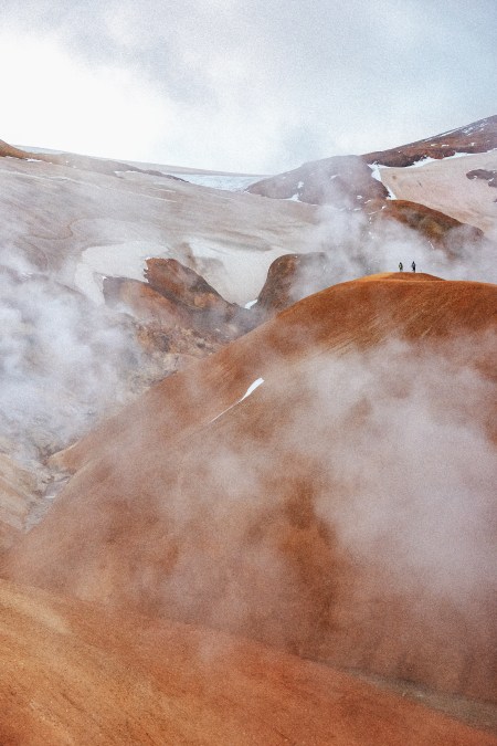 We headed miles away through dusty badlands, similar in topography to Utah or southern Idaho, wending our way up into the Highlands to the section known as Kerlingarfjöll. Unfortunately, the light departed behind clouds literally just as we got there. But walking up and down steep ridges as thermal spots leaked sulfurous clouds made for some interesting photographic possibilities.