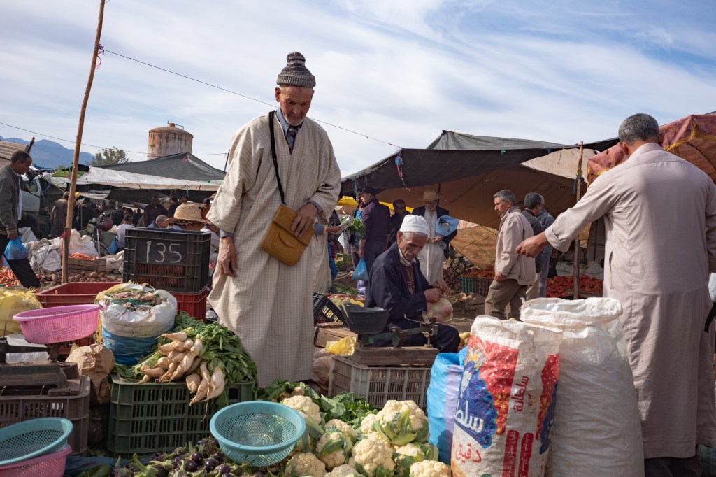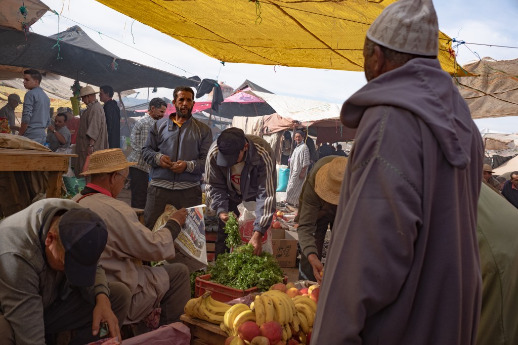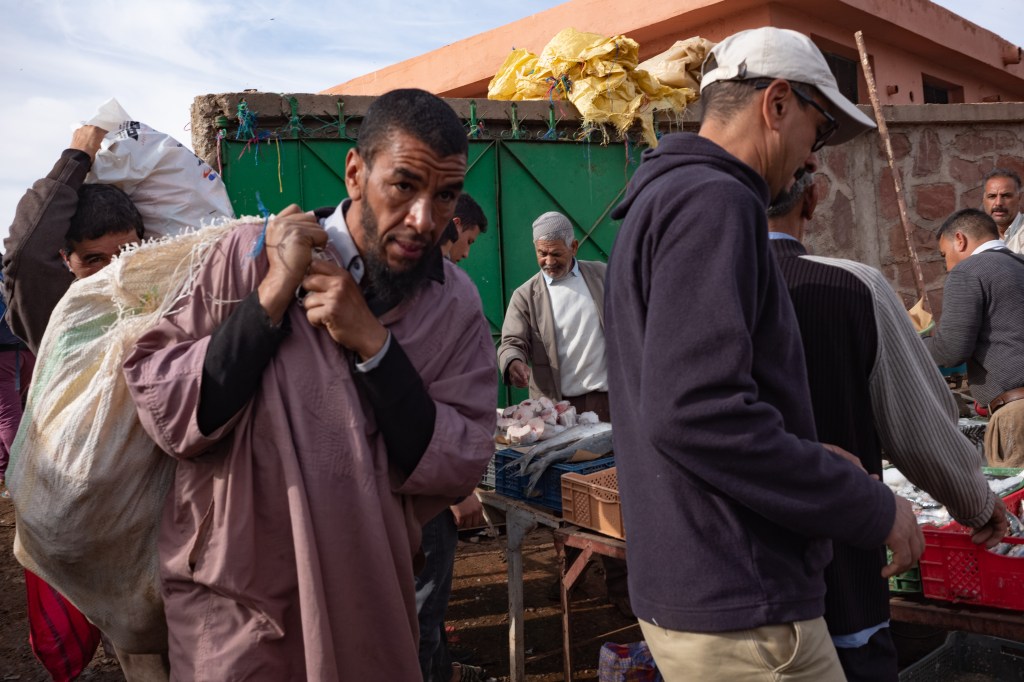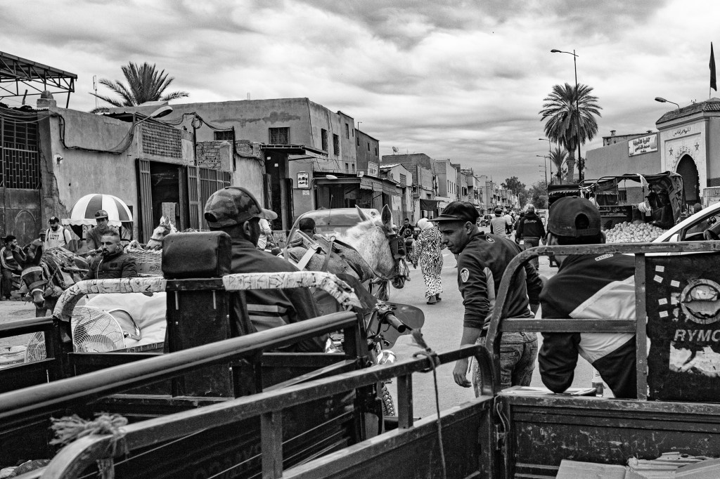 On the last day of our trip, we went to the village of Aghmat, for the Friday morning market. It was agreed among our friends that others would keep their cameras down and I’d wander through shooting from the hip as unobtrusively as possible. I’d share with our friends whatever pictures I took, but they wouldn’t trigger a reaction by everyone holding up their iPhones.