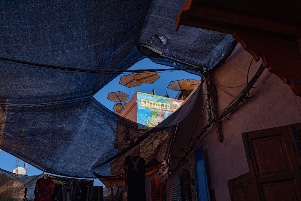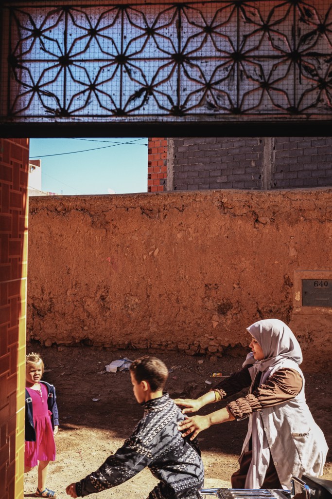I really don’t know what’s going on in this picture — I was too busy snapping the shutter. I remember standing in the foyer on my way out of a small store in a small town outside of Marrakech where crafts are made by a collective of artisans and seeing, first, the blue transom light, and next, some action in the street. I instinctively brought the camera to my eye. My settings were what I had most recently used on the street — approximately f/8, ISO 400, probably 1/250th of a second (I’ll check the metadata later to see.) All I know is that in capturing this incident in which Europe meets Africa/Christianity meets Islam, two children engage though a mother intervenes, the full story is unknown and gone in a split second. It is … the reason to carry a camera. To be ready, you have to be comfortable making pictures of people, permission given or not.