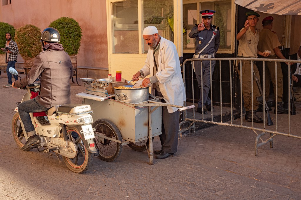 As a privileged visitor, you make assumptions. I assume that part of the reason why people in Marrakech don’t want their picture taken is that we foreign tourists are invaders in their community. Even though the local economy is dependent upon tourism, tourists don’t have the moral “right” to take their picture without their permission, which they’re unwilling to give. The Moroccans try to preserve their personal rights and autonomy even as, for hundreds of years, Unbelievers — in some cases, colonial subjugators — have tromped clumsily through their neighborhoods. Moreover, Muslims have a religious edict against human and animal images, against a human representing things invented by Allah alone. A street photographer from the U.S. enters the Medina with a history as complex as the culture he or she wants to turn into two-dimensional pictures.