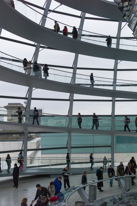 But on a sunny day — we actually had one — it’s a gorgeous city, and it exists in living color, not the black and white of news reels. One walks around a city that has shrugged off most notions of division, and has punctuated what survived the war — and what survived the communists — with the post modernism and precise design sense of a rich and sophisticated city that weirdly has little in the way of contemporary airs. It’s somewhat stunning to learn that Angela Merkel lives in a modest town house just across the street from the Museum Island, protected by a single policeman. But in the context of what Berlin — and Germany — is now, it makes perfect sense.