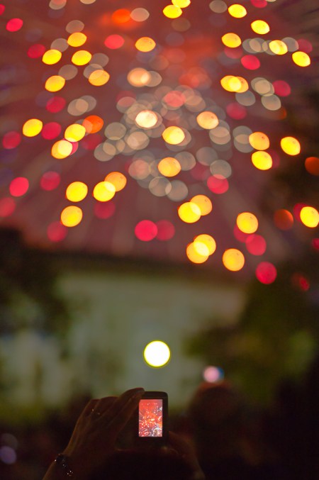 Looking at the fireworks from the Red Cross Building toward the OAS, 4 July 2010, Washington, D.C. Leica M9, Summilux 50, ISO 800, @ f/1.4. No idea what the other camera is.