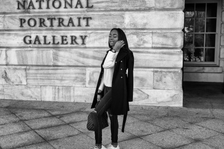 As I walked into the National Portrait Gallery, I had the Sigma autofocus lens on the camera, and caught the picture below. I think if I’d had an M, I would have been able to get both the sign and her feet into the picture, as I’m more fluid and experienced with an M and 35mm combo. But still, what a capable street camera this is.